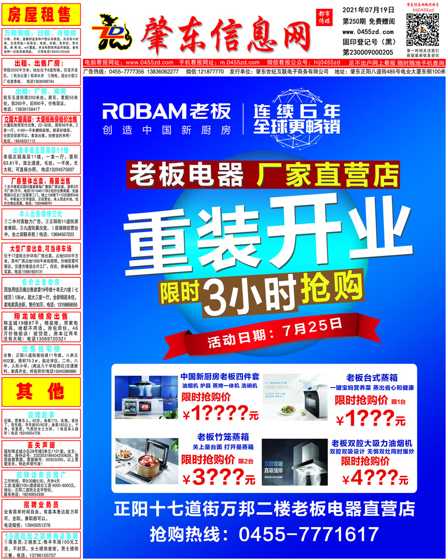 肇東信息網(wǎng)DM報(bào)紙2021年7月19日第250期