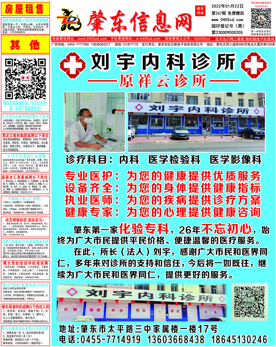 肇東信息網(wǎng)DM報(bào)紙2022年1月22日第267期