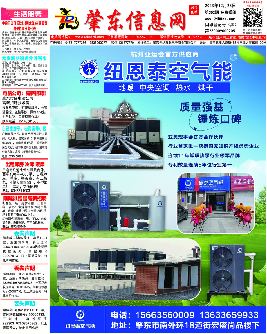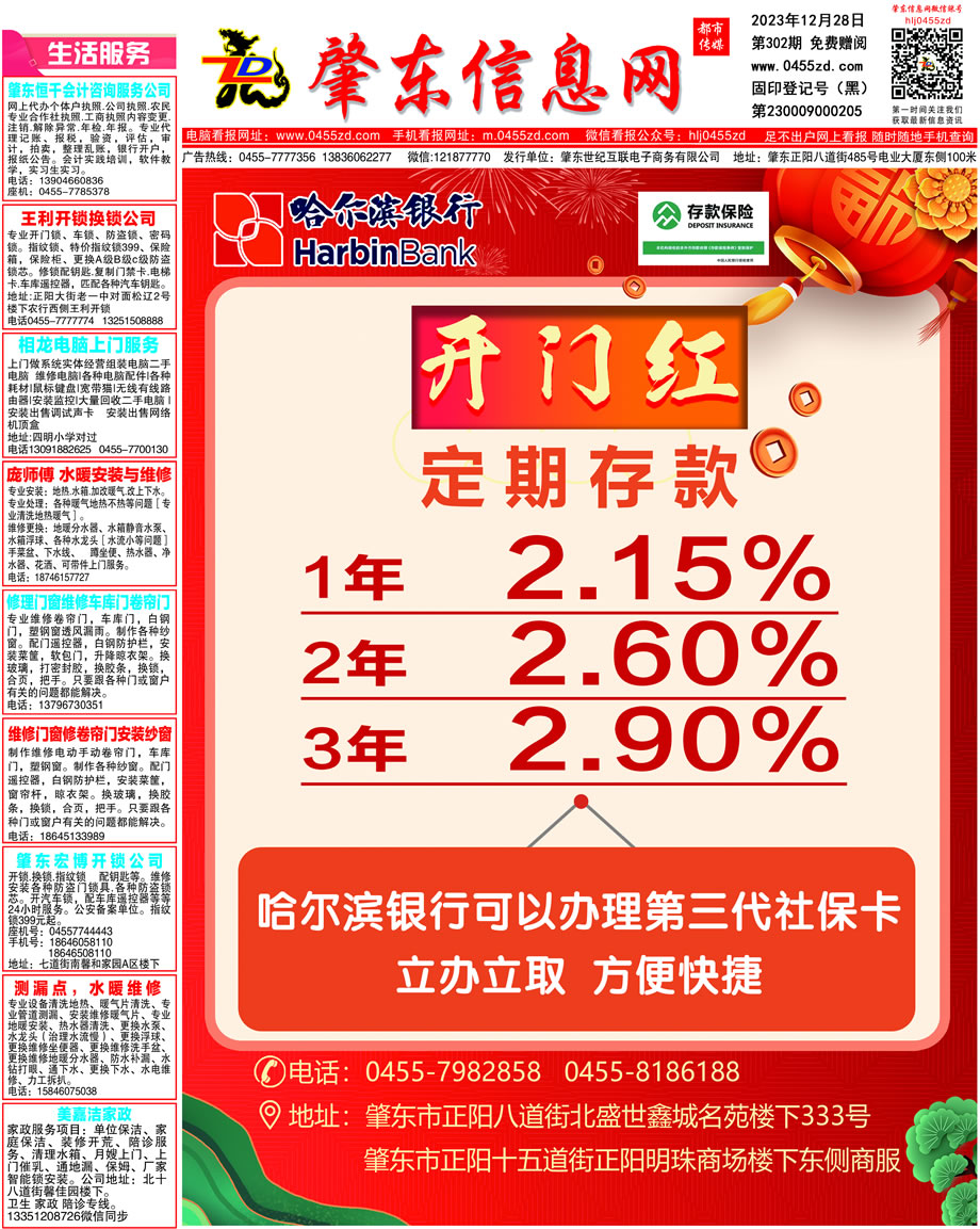 肇東信息網(wǎng)DM報(bào)紙2023年12月28日第302期