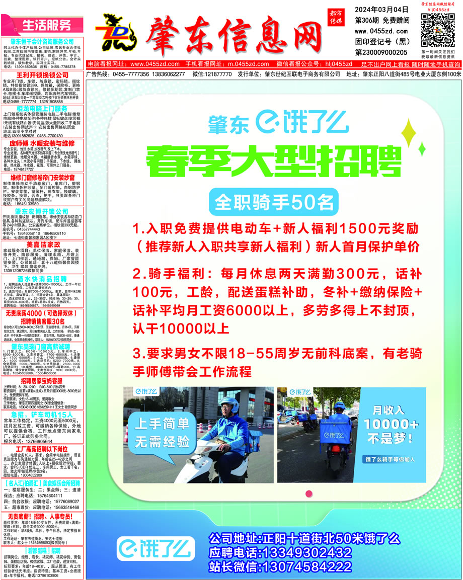 肇東信息網(wǎng)DM報(bào)紙2024年3月4日第306期