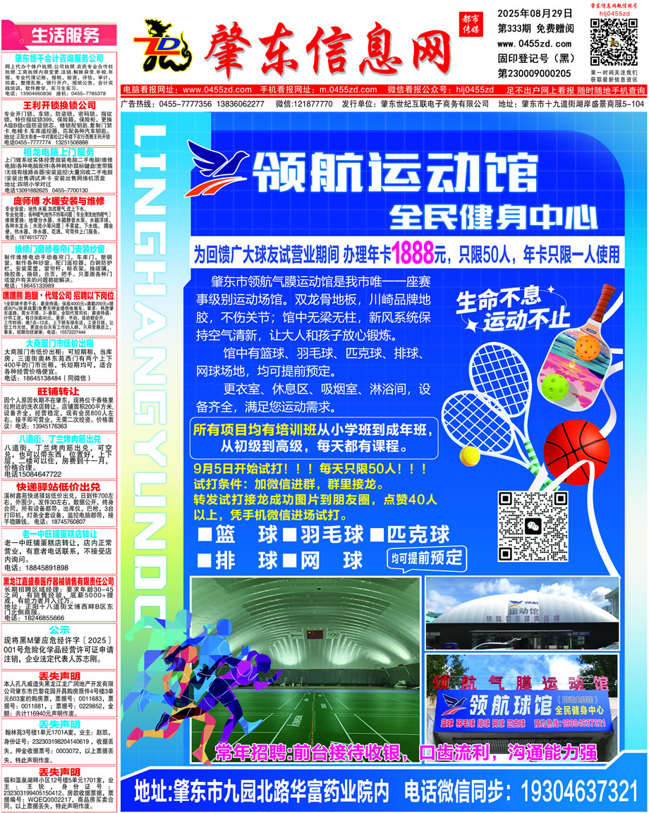 肇東信息網(wǎng)DM報(bào)紙2025年8月29日第333期
