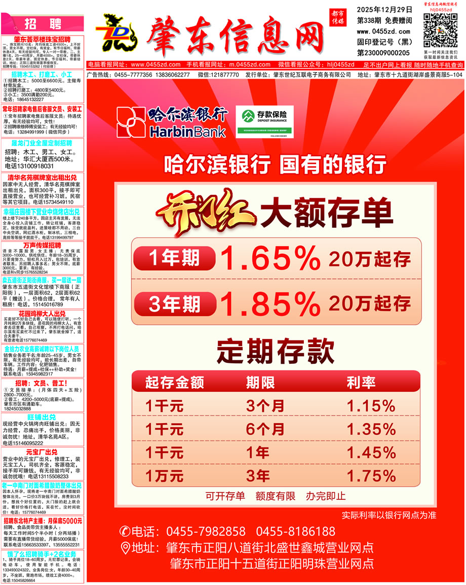肇東信息網(wǎng)DM報(bào)紙2025年12月29日第338期