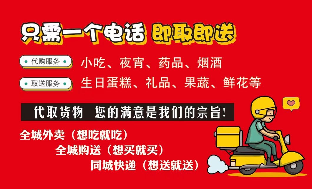 包括取,送文件/物品,快遞,幫買菜,日用品,送貨上門,(24小時(shí)電瓶搭車),電話也是微信,有需要的聯(lián)系吧!