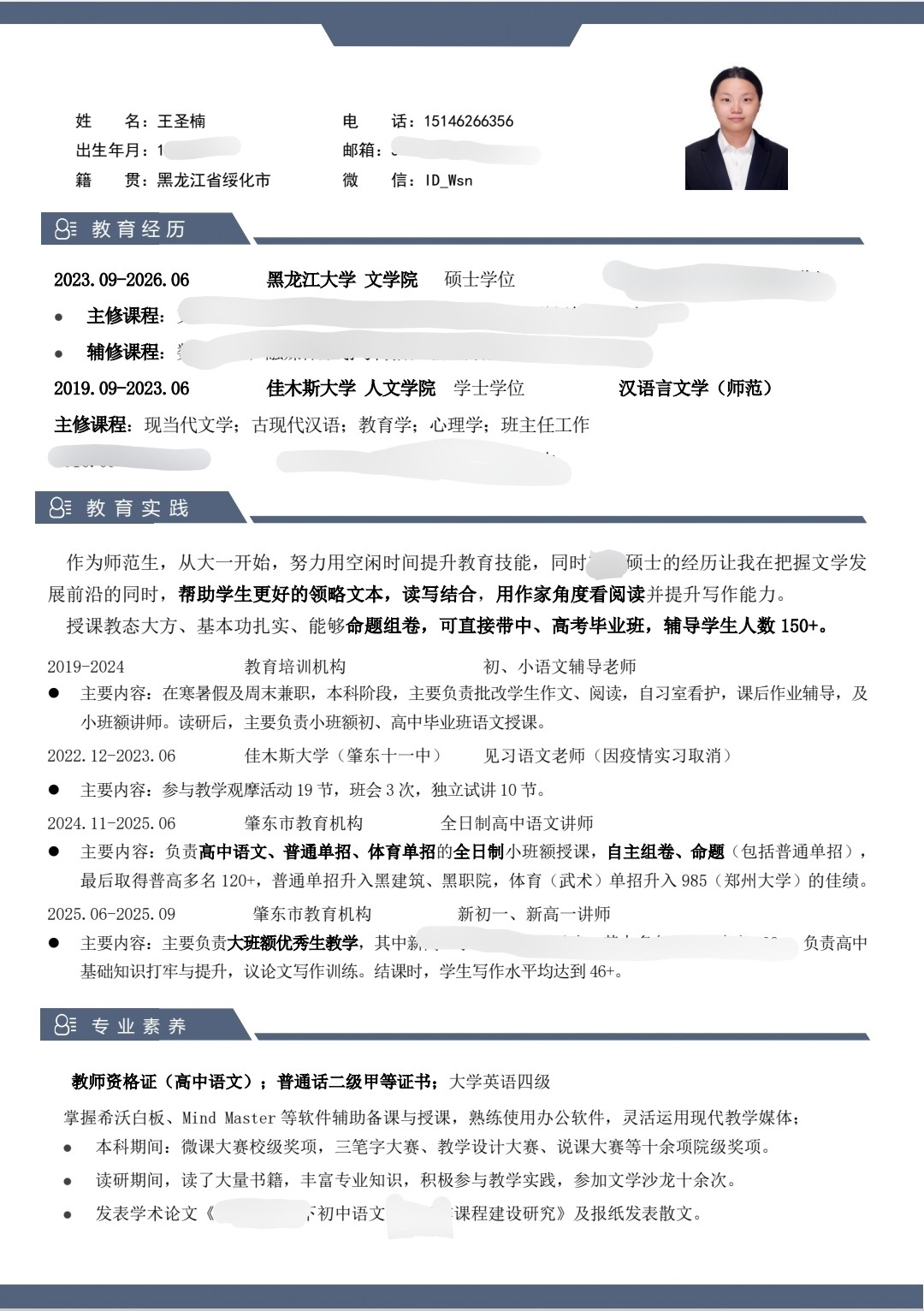當(dāng)前位置:首頁 > 招聘求職 > 求職 > 初高中語文老師