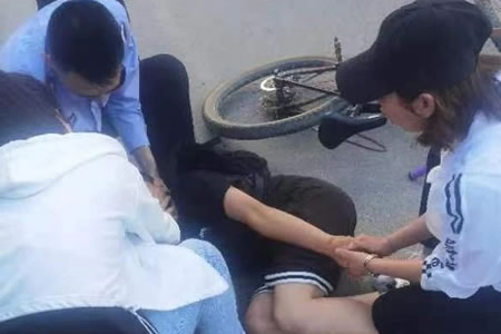 6月25日下午16時(shí)正值中考期間,在園林南路與消防街交叉路口執(zhí)勤的周雪峰等三位交警發(fā)現(xiàn),一名初中生摸樣的小男孩突然摔倒在路口,見(jiàn)此情景,三名交警急忙跑過(guò)去查看情...