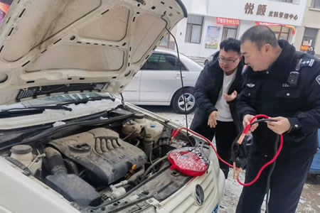 群眾車輛無法啟動(dòng),肇東警格員牽線搭“火”及時(shí)救援
