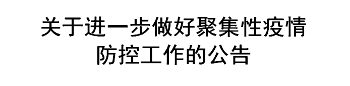 當(dāng)前,面臨境外返回人員的增多和聚集性疫情偶發(fā)的嚴(yán)峻形勢(shì),防控任務(wù)更加艱巨。為切實(shí)做好“外防輸入、內(nèi)防反彈”工作,現(xiàn)將有關(guān)事項(xiàng)公告如下: