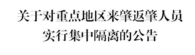 關(guān)于對重點(diǎn)地區(qū)來肇返肇人員實(shí)行集中隔離的公告