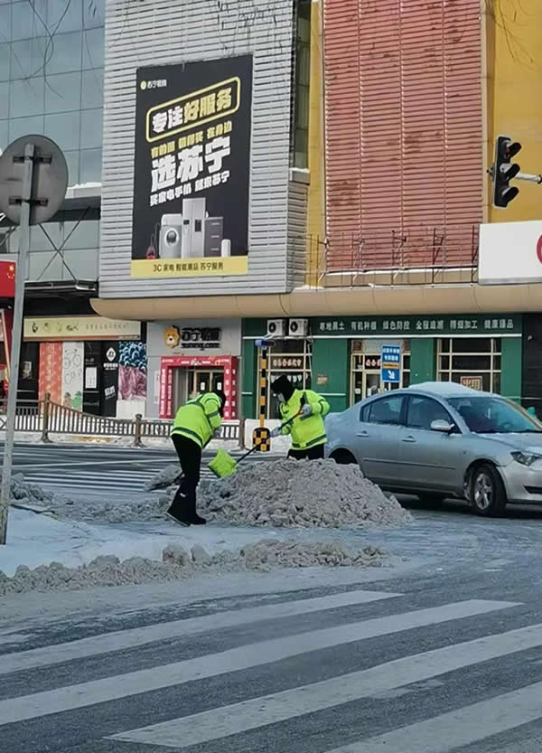 開啟警燈警笛巡邏在轄區(qū)國省道、鄉(xiāng)村公路、大街小巷,救助被困車輛、幫助環(huán)衛(wèi)工人鏟冰除雪、提醒過往車輛減速慢行,一句叮囑一份安全,用實(shí)際行動維護(hù)群眾雪天出行安全。