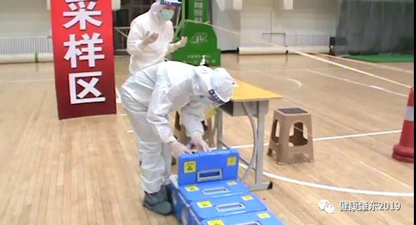 登記區(qū)運用信息化技術(shù),使用電腦、身份證掃碼儀、掃碼槍進行身份登記和條碼識別,使登記環(huán)節(jié)的速度大大提高。采樣區(qū)按照1:10混采方式操作,每采樣一人按照七部洗手法進行消毒一次,一人采樣,一人收儲。兩組采樣隊通道使用隔離帶進行間隔,登記區(qū)與采樣區(qū)11米距離,中間用一米黃線間隔,居民在等候區(qū)綠色地標帶處等候,由民警站崗維持順序,等候區(qū)外的居民秩序由小社區(qū)干部佩戴疫情防控工作人員的紅色袖標站崗維持秩序。居民進入登記區(qū)后腳踏在黃色隔離帶上,保證間隔距離,進出兩個通道,現(xiàn)場秩序井然,當所有采集任務(wù)結(jié)束后,人民醫(yī)院和第一醫(yī)院的轉(zhuǎn)運人員分別把標本轉(zhuǎn)運箱送至等候在體育館外的本單位負壓救護車上,人員清場之后,疾控部門的消殺人員對現(xiàn)場進行了消殺處理,整個演練過程進行了2個小時。之后參加演練的單位召開會議,進行了總結(jié),對發(fā)現(xiàn)的問題提出了整改意見,為我市下步全員核酸采集起到了很好的示范作用。