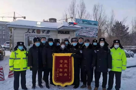 2月1日,哈大高速公路肇東卡口收到于某母子贈(zèng)送的錦旗,上面印有“抗疫同舟,守望相助”,對(duì)卡口執(zhí)勤民警雪中送炭、熱心幫助的擔(dān)當(dāng)作為表達(dá)了感激之情。