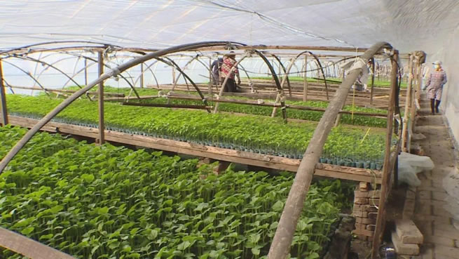 我們?nèi)ツ?2月份就開始育苗了,今年計(jì)劃種4個(gè)溫室,30個(gè)大棚,一共是80畝地。等4月中旬辣椒就能采摘開賣了,五月份黃瓜就能下來了。