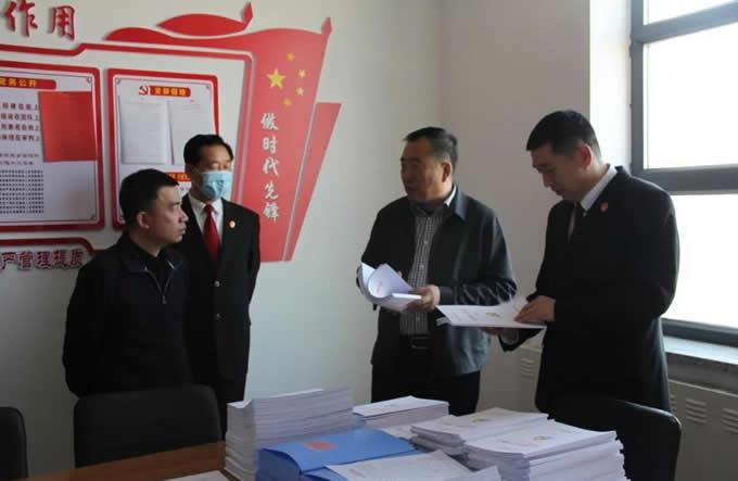 在肇東法院隊伍教育整頓領導小組辦公室檢查指導中, 劉昭業(yè)一行詳細聽取了黨組書記、院長王鐵軍關于隊伍教育整頓工作的匯報。仔細翻閱了我院隊伍教育整頓工作的相關材料,逐項查閱了隊伍教育整頓宣傳情況、學習教育日程安排、日常工作臺賬等材料,逐項查閱了我院隊伍教育整頓工作開展情況,并對肇東法院充分利用資源,營造向社會正面宣傳、開門搞教育整頓的濃厚氛圍給予肯定。