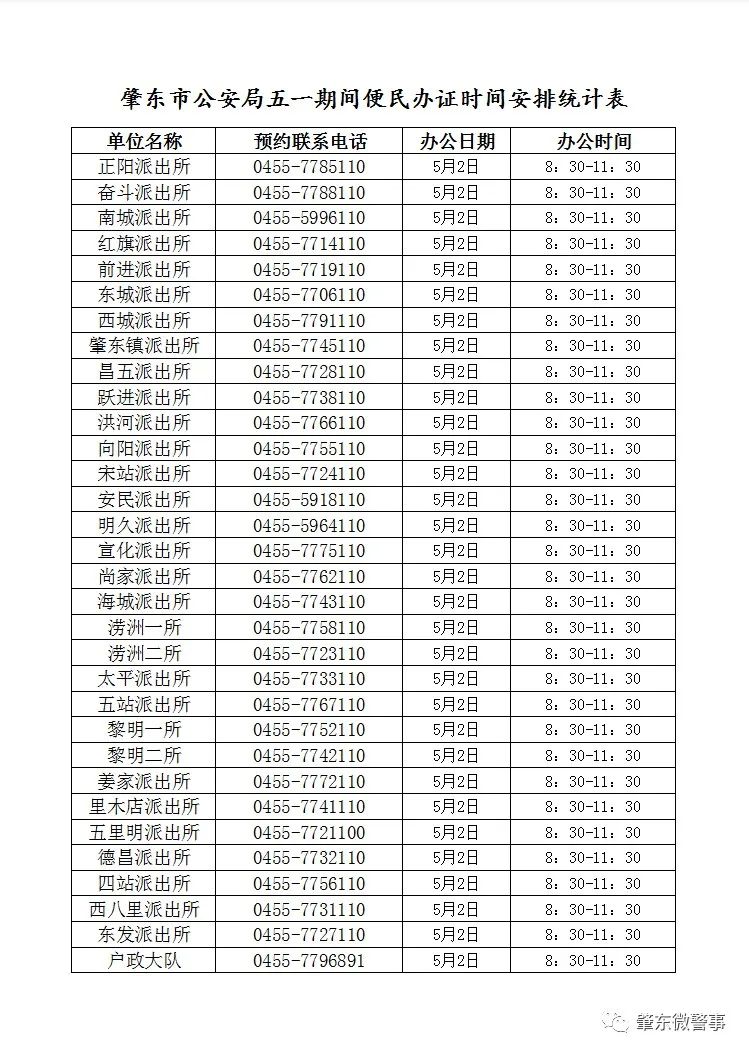 附件:肇東市公安局五一期間便民辦證時間安排表
