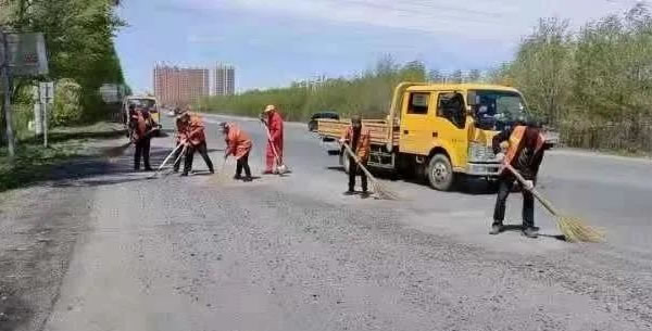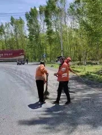 肇東市公路管理處:清除路面灑落石子 確保公路通行安全