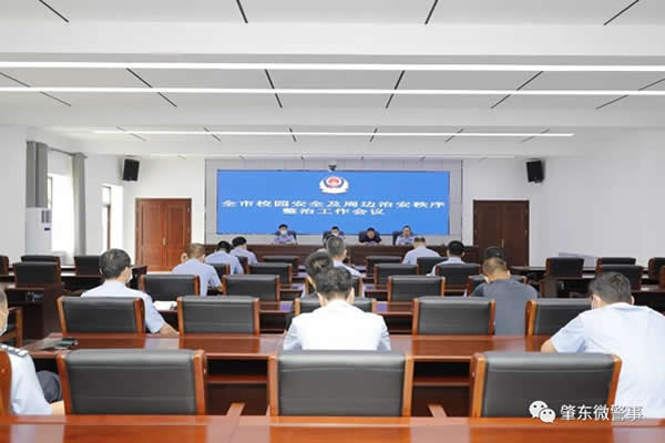 公安局四級高級警長王西喬,治安、戶政、刑警、交警、巡特警、禁毒、食藥環(huán)偵等警種負責(zé)同志,教育局相關(guān)負責(zé)同志在主會場參加會議;城鄉(xiāng)派出所長和駐校民警,中小學(xué)校校長、幼兒園園長、校外辦學(xué)機構(gòu)負責(zé)人通過視頻會議系統(tǒng)在分會場參會。