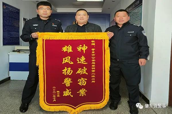 10月15日,肇東市黎明鎮(zhèn)民富村某裝飾材料加工廠負(fù)責(zé)人陳某到肇東市公安局黎明第二派出所,將一面印有“神速破竊案 雄風(fēng)揚(yáng)警威”的錦旗贈送給派出所民警,對派出所在短時期內(nèi)破獲其廠內(nèi)工人財物被盜案表示感謝。