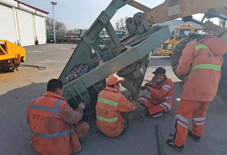 檢修過程中,維修人員重點對裝載機(jī)、除雪車、除雪輥、防滑料撒布車進(jìn)行保養(yǎng)和預(yù)防性維修,及時更換潤滑油,緊固零部件,充足電瓶,加足防凍液,保證機(jī)械設(shè)備處于良好技術(shù)狀態(tài),確保在冰雪應(yīng)急情況下隨調(diào)隨用,保障冬季養(yǎng)護(hù)應(yīng)急工作順利開展。