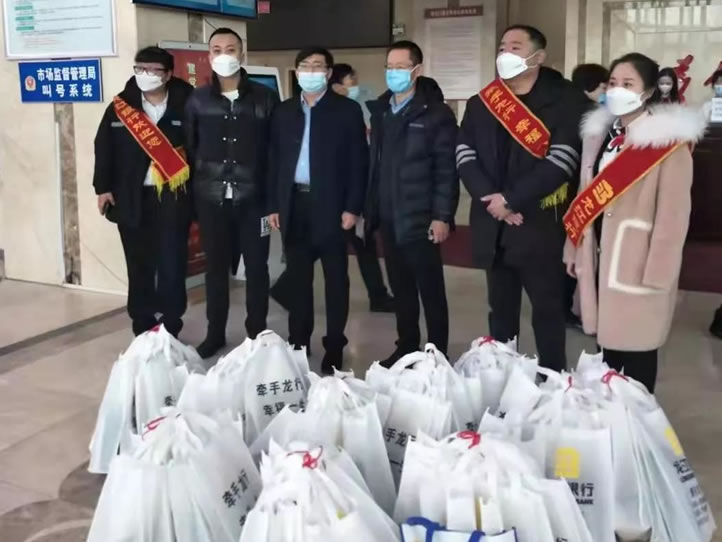 龍江銀行一行人為中心送來口罩和辦公用品
