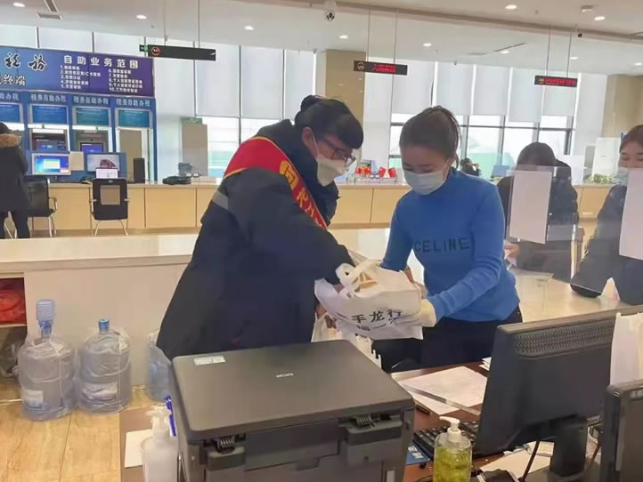 疫情無情,人有情。12月 日,龍江銀行肇東支行一行人在屈行長的帶領下到行政審批服務中心大廳進行慰問,一早就將口罩和辦公用品分發(fā)給一線的窗口工作人員。