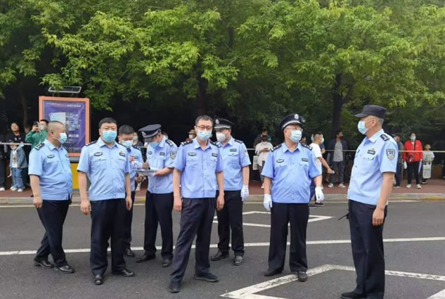 期間,各警種密切配合、協(xié)同作戰(zhàn),在考點(diǎn)外設(shè)立執(zhí)勤點(diǎn),劃定管戒區(qū)域,各參戰(zhàn)民警、輔警頭頂烈日、耐著高溫,始終嚴(yán)格遵守紀(jì)律、警容嚴(yán)整,認(rèn)真履行保衛(wèi)職責(zé),在各考點(diǎn)及周邊科學(xué)部署警力,設(shè)立警戒線,維護(hù)考點(diǎn)秩序,確?键c(diǎn)及周邊安全穩(wěn)定。交警部門(mén)在各考點(diǎn)及附近路段設(shè)置禁鳴、禁停、限速、警戒線、禁止通行和繞行等醒目交通標(biāo)志,對(duì)車輛進(jìn)行交通管制,加強(qiáng)周邊道路交通疏通,確?键c(diǎn)及城區(qū)道路交通安全暢通。巡特警部門(mén)加強(qiáng)考點(diǎn)及周邊巡邏防控,強(qiáng)化顯性用警,壓降案件,確保平安。同時(shí),警務(wù)督察部門(mén)還對(duì)各警種進(jìn)行督導(dǎo)檢查,確保了中考安保各項(xiàng)措施落實(shí)見(jiàn)效。