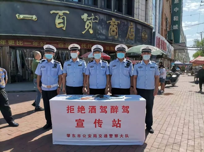 為深入推進道路交通事故預防“減量控大”和“核心使命-2022系列戰(zhàn)役工作,結合省公安廳及市局《夏季酒駕醉駕集中整治百日行動方案》部署要求,進一步加強道路交通安全管理工作,持續(xù)保持對酒駕、醉駕違法犯罪行為的高壓整治態(tài)勢,加大交通安全宣傳力度,普及酒駕醉駕危害知識,切實做好道路交通事故預防工作,有效提高廣大交通參與者的安全意識、法律意識、文明意識。8月14日上午,肇東市公安交警大隊在一百商圈開展“拒絕酒駕醉駕”百日行動宣傳活動。