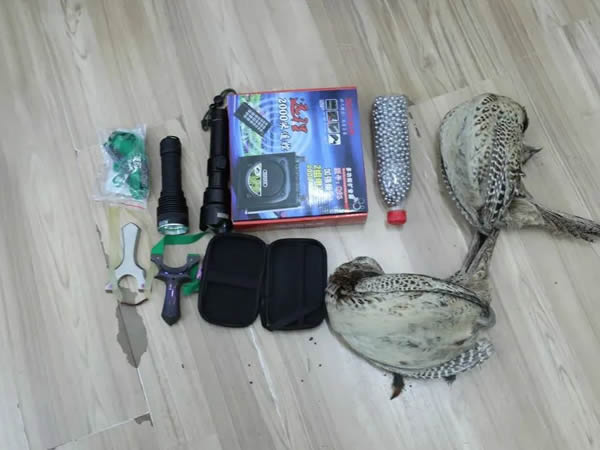 經(jīng)訊問,武某成、呂某、趙某勇對使用彈弓在鐵東區(qū)野草地中打野雞一事供認(rèn)不諱。三人所捕獲的野雞(學(xué)名環(huán)頸雉)為國家二級保護動物。民警現(xiàn)場繳獲彈弓、鋼珠、強光手電、野雞叫聲設(shè)備等作案工具。據(jù)三人所述,當(dāng)天閑來無事酒后由于想滿足口腹之欲便準(zhǔn)備打點野味來嘗嘗鮮。開車來到鐵東區(qū)草甸子,利用專業(yè)照明設(shè)備看到了野雞后便使用彈弓瞄準(zhǔn)、射殺、撿拾,但沒想到尚未嘗到美味,卻要咽下觸犯刑律的惡果。