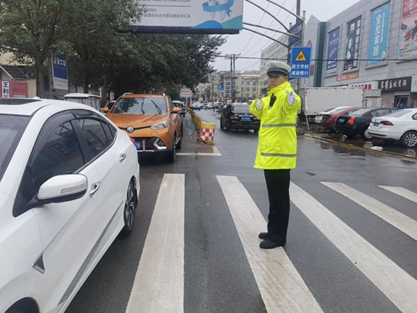 雨中,民警在轄區(qū)學(xué)校護學(xué)崗增派警力,指揮過往車輛,對接送學(xué)生的車輛進(jìn)行快速疏導(dǎo),護送學(xué)生安全過馬路,保障學(xué)生上下學(xué)交通安全及周邊道路交通安全有序暢通。全體執(zhí)勤民輔警縱然全身濕透,也沒有一絲怠慢,在各自的崗位上不畏風(fēng)雨,恪盡職守,全力保障雨天轄區(qū)道路安全暢通和廣大群眾的出行安全。