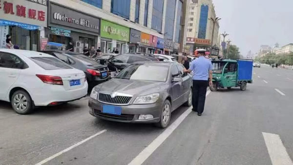 行動中,執(zhí)勤民輔警按照“宣傳在先,處罰在后”原則,對車流、人流聚集的商業(yè)街,以及主干道道路違法停車行為突出的道路,實(shí)施高頻度、高密度的滾動整治。對短暫停車行為,駕駛員未下車的以教育勸離為主,引導(dǎo)將車輛規(guī)范停放到指定區(qū)域;對無視交通法規(guī),在機(jī)動車道、人行道、非機(jī)動車道的違停車輛,現(xiàn)場拍照粘貼違法停車告知單,對違規(guī)車輛進(jìn)行處罰;對阻礙交通通行能力,造成安全隱患的,堅(jiān)決予以拖離;對長期占道的“僵尸車”,聯(lián)系車主督促其及時(shí)進(jìn)行處理或主動將車開走,無法聯(lián)系到車主的或電話告知仍未處理的,統(tǒng)一將其拖離現(xiàn)場。