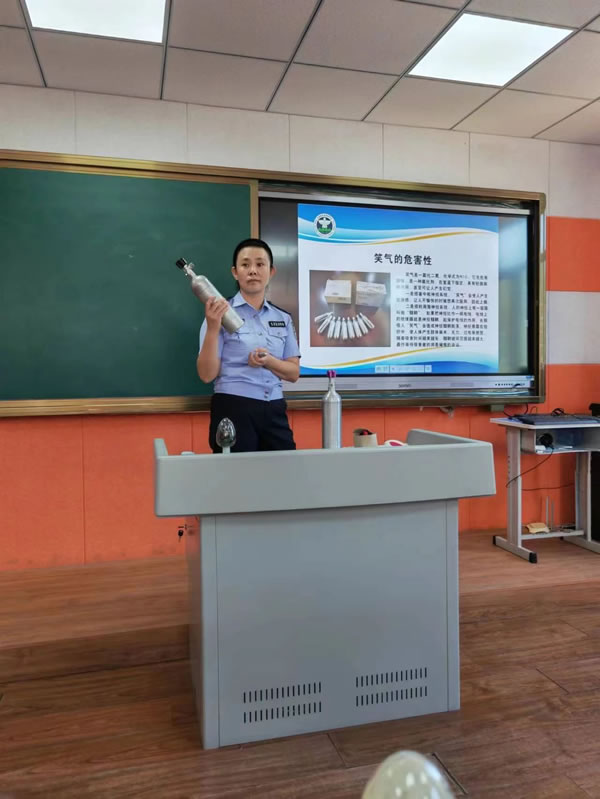 宣講中,禁毒民警結合專業(yè)知識和典型案例為同學們精心制作了禁毒宣傳課件。授課內容豐富、生動形象地向學生們講解毒品對個人、家庭、社會的危害,重點闡述了生活中識毒、防毒、拒毒技巧和方法,教育引導在校學生樹立正確的人生觀、法治觀、主動抵制不良誘惑,不要對毒品抱有好奇心和僥幸心。"