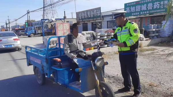當(dāng)前正值秋收旺季,為持續(xù)推進(jìn)“保秋收 壓事故”專項整治行動,做好轄區(qū)農(nóng)村道路交通安全管理工作,全力遏制和減少秋收農(nóng)忙季節(jié)道路交通事故。近日,肇東公安交警聯(lián)合市農(nóng)業(yè)農(nóng)村局,積極組織人力深入村鎮(zhèn)開展交通安全宣傳活動,為秋收時節(jié)農(nóng)村地區(qū)筑牢交通安全防線。