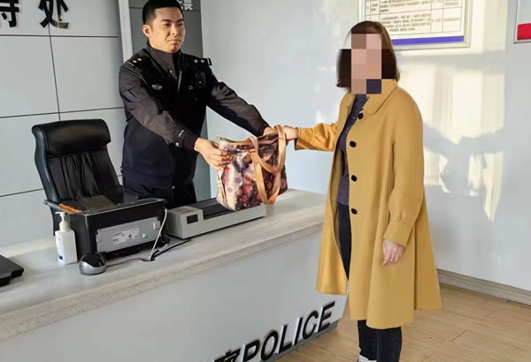 接到警情后,民警王宇峰、史林火速趕往現(xiàn)場,到達復(fù)印社后發(fā)現(xiàn)桌子上放著一個花格的布兜,民警現(xiàn)場清點發(fā)現(xiàn)包內(nèi)有身份證、銀行卡及5萬余元現(xiàn)金。“失主遺失了大額現(xiàn)金肯定很著急!泵窬⒓撮_展查找失主工作,經(jīng)過約兩小時的細致查找,民警找到失主李女士,當李女士聽到布兜找到后急匆匆趕到派出所,民警核對了其身份信息并與失主確認了包內(nèi)物品無誤后,將布兜還給了失主。經(jīng)過民警短暫交流得知,李女士的親戚近日突發(fā)疾病住院,需要大量現(xiàn)金做手術(shù)。李女士心急如焚,在附近的銀行取完現(xiàn)金后,便想著趕緊將錢送到醫(yī)院。由于李女士當時手里拿的東西較多,中途到復(fù)印社打印治病所需材料時,在慌亂之中,將裝有現(xiàn)金的布兜遺忘在復(fù)印社,一直到醫(yī)院時才發(fā)現(xiàn)裝有5萬元現(xiàn)金的布兜不見了。本以為過了這么長時間了,可能尋找無望,沒想到肇東警察把包給找了回來。李女士滿懷感激地表達了謝意,當場從包內(nèi)拿出現(xiàn)金就要感謝派出所民警,被民警婉言拒絕了,表示幫助群眾是警察份內(nèi)的工作,同時提醒其今后要妥善保管好隨身財物。