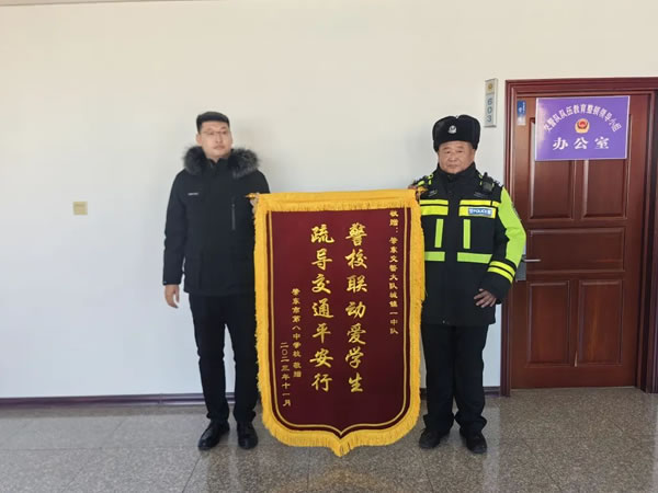 肇東公安:堅(jiān)守校園安全崗 學(xué)校致謝送錦旗