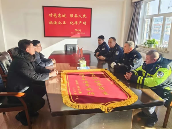 11月13日,肇東市第八中學(xué)校長(zhǎng)王慶和副校長(zhǎng)王大偉來(lái)到交警大隊(duì),將一面印有“警校聯(lián)動(dòng)愛(ài)學(xué)生,疏導(dǎo)交通平安行”的錦旗送到交警大隊(duì)城鎮(zhèn)一中隊(duì),代表全校師生由衷感謝城鎮(zhèn)一中隊(duì)“護(hù)學(xué)崗”執(zhí)勤人員情系師生出行安全,維護(hù)校園周邊道路交通秩序,保障全校師生上下學(xué)期間交通安全、有序、暢通。