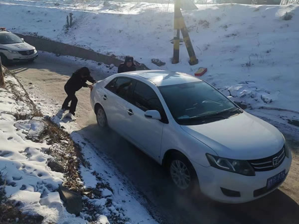 汽車冬季涵洞打滑 肇東公安緊急救援