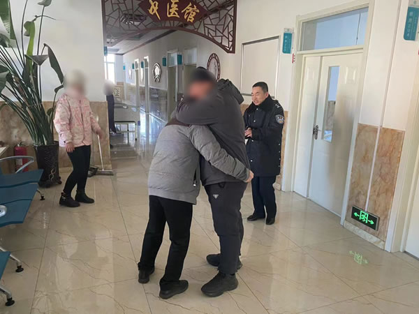 2月26日早上7時許,五站派出所值班民警接五站鎮(zhèn)東安村村民安某報警稱,在五站鎮(zhèn)東安村道口發(fā)現(xiàn)一人躺在路邊溝里,生死不明。民警立即出警,在五站鎮(zhèn)301國道與東安村路交叉口南側(cè)溝里發(fā)現(xiàn)一女子躺在樹下,經(jīng)詢問該人神志清醒,生命體征尚好,但由于受凍時間較久,無法說明姓名、地址及家人情況,手機關(guān)機狀態(tài),民警立即將該女子送往五站鎮(zhèn)衛(wèi)生院緊急救治。隨即民警通過僅有的信息查詢到該女子名叫呂某軍,戶籍地址為五大連池市四平鄉(xiāng)某村居民。民警聯(lián)系到其父親呂某利,呂某利稱女兒患有抑郁癥,于2024年2月25日走失,全家人正在四處尋找呂某,正不知所措時接到民警電話,呂某利和女子丈夫王某看到呂某安然無恙,已經(jīng)脫離險境時,不勝感激,抱頭痛哭。家人對民警的救助行為表示萬分感謝,并表示將在今后加強關(guān)心照顧,避免再次走失,隨即該女子被其家人接回。