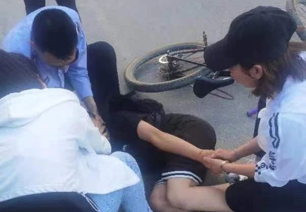 原來,小男孩騎自行車路過此處,可能是操作不當導(dǎo)致連人帶車一起翻倒。三名交警發(fā)現(xiàn)小男孩臉色蒼白、口吐白沫、全身不停抽搐,當時情況很嚴重。為防止小男孩咬到自己舌頭,交警李少博將自己的手指伸到他的嘴里,顧不得鉆心的疼痛,一直堅持到小男孩清醒才將手指從其口中拿出來,這時李少博的手指上已被咬出深深的韌痕。同時,周雪峰與附近趕來的巡特警和兩名路過的女士為其掐虎口掐人中,經(jīng)過大家的及時救治,小男孩很快清醒過來。