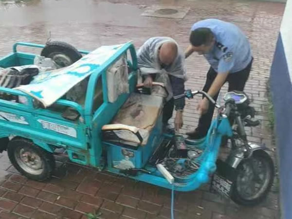 了解情況后,民警冒著大雨幫助遲大哥把沒電的三輪車推到派出所院內(nèi)進行充電,并將遲大哥邀請到派出所屋內(nèi),順便避一避雨,為其購買了蛋糕火腿腸等食品,并為其提供了熱水,緩解了遲大哥瑟瑟發(fā)抖的身體,遲大哥激動地說“今天要是沒有你們我肯定回不了家了,能真心幫助我的好心人也只有派出所了……”遲大哥不斷感謝派出所民輔警。