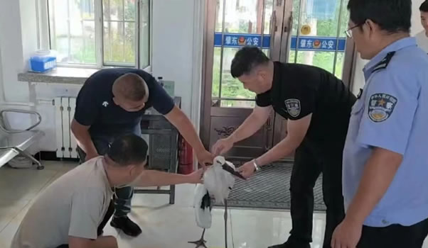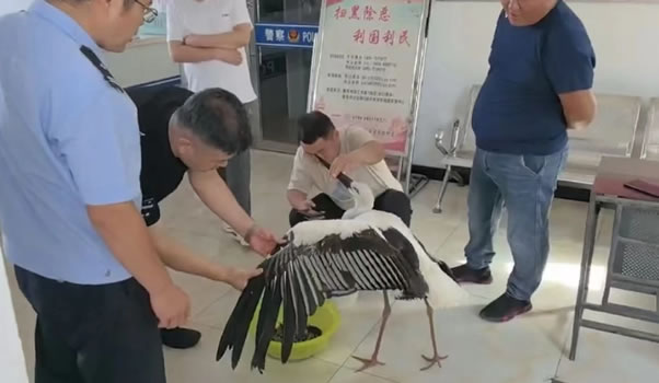 肇東警民攜手愛心救援“鳥中大熊貓”東方白鸛