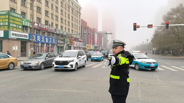 在霧氣集中的重點路段及事故多發(fā)點段加派警力。針對301國道肇東路段大霧、團霧天氣,路面能見度低,易發(fā)生交通事故的實際情況,交警大隊及轄區(qū)派出所科學(xué)部署警力,將警力下沉到路面一線,全力加強夜間、黎明時段重點路段的巡邏管控力度,通過鳴警笛、亮警燈、喊話器提醒及設(shè)置勸導(dǎo)卡點等方式,提示過往車輛濃霧天氣注意減速慢行。在城區(qū)車流量和人流量大的路段采取適當(dāng)交通疏導(dǎo)。做好車輛和行人的安全提醒,對電動自行車駕駛?cè)瞬慌宕靼踩^盔和逆行等違法行為進行勸導(dǎo)和處罰,指揮車輛和非機動車、行人有序通行,確保道路安全暢通。