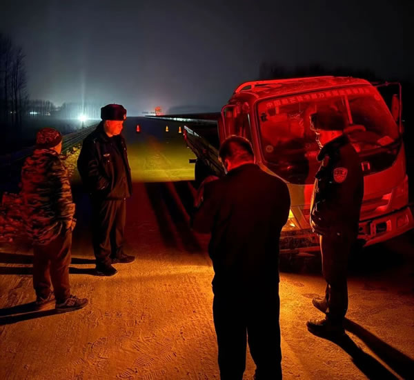 2024年11月27日20時(shí)許,家住哈爾濱市的個(gè)體司機(jī)王先生駕駛自營(yíng)奧鈴牌貨車行駛至哈肇高速銀山服務(wù)區(qū)附近時(shí),因粗心大意未做好車輛日常檢查,再加上道路冰雪濕滑,致使右側(cè)前輪脫落10余米,車輛發(fā)生單方事故。接到求助后,民輔警迅速協(xié)調(diào)因道路結(jié)冰封閉的哈肇高速,第一時(shí)間進(jìn)入高速公路開(kāi)展施救。到達(dá)現(xiàn)場(chǎng)后,民輔警一邊安撫群眾情緒,一邊查看車輛輪胎情況并詢問(wèn)車主是否還有備胎。同時(shí)聯(lián)系救援拖車,將事故車輛拖至安全路段。受冷空氣影響,因剛下過(guò)大雪,夜間溫度極低。但民輔警絲毫沒(méi)有受嚴(yán)寒天氣影響,考慮到群眾回家的急切心情,無(wú)一人嫌麻煩和放棄。經(jīng)過(guò)近半個(gè)小時(shí)的不懈努力,終于幫群眾將車帶離事故區(qū)域。