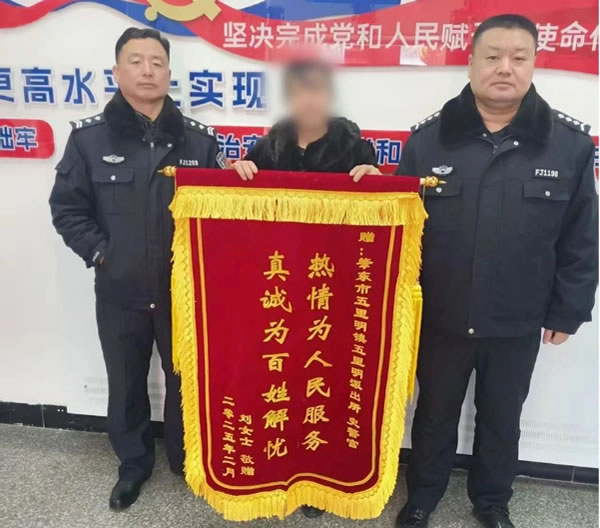 最后,修理部的技術(shù)人員到達(dá)現(xiàn)場(chǎng),成功修好了汽車故障。面對(duì)民警的及時(shí)救助,劉女士送上錦旗,表達(dá)深深的謝意。