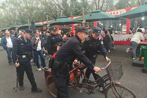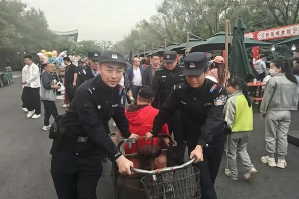 肇東市小餅節(jié)活動現(xiàn)場,有群眾向現(xiàn)場執(zhí)勤民警求助,稱一名老人因身體不適無法離開。民警張藝超、鄭慧宇、王宇、付洋迅速趕到現(xiàn)場,經(jīng)詢問得知,老人患有腦出血后遺癥,突然發(fā)作導(dǎo)致無法行走。情況緊急,民警立即協(xié)調(diào)借用環(huán)衛(wèi)三輪車,小心翼翼地將老人" />