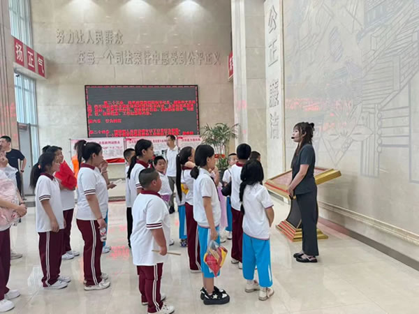 活動(dòng)當(dāng)日,陽(yáng)光明媚,在“愛(ài)心媽媽”的陪伴下,肇東市新立小學(xué)的學(xué)生們滿(mǎn)懷好奇與期待踏入法院的大門(mén)。在解說(shuō)員的引導(dǎo)下,大家有序參觀了訴訟服務(wù)中心、科技法庭、羈押室等場(chǎng)所,直觀感受到司法便民的舉措。走進(jìn)莊嚴(yán)的審判法庭,看到高懸的國(guó)徽、威嚴(yán)的法臺(tái),同學(xué)們深刻體會(huì)到法律的神圣與莊重。觸摸法槌、親身體驗(yàn)法官、檢察官、辯護(hù)人等角色,讓大家興奮不已,也對(duì)司法工作有了更直觀的認(rèn)識(shí)。在參觀過(guò)程中,“愛(ài)心媽媽”們始終陪伴在同學(xué)們身邊,細(xì)心地提醒大家注意安全,輕聲解答同學(xué)們的疑問(wèn),眼神中滿(mǎn)是關(guān)切與愛(ài)護(hù)。