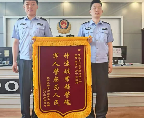 6月4日,紅旗派出所接到了韓女士寄來的錦旗。