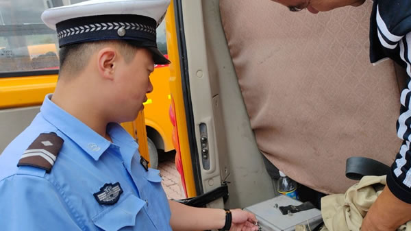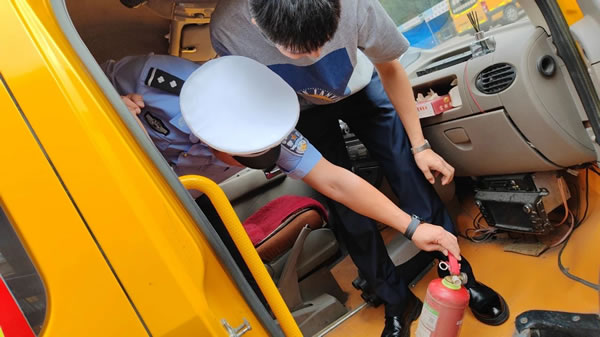 活動中,客運中隊民警首先對校車的輪胎、反光標(biāo)識、安全錘、逃生門、滅火器、安全帶、停車指示牌等安全設(shè)備進行了認真檢查,其次對校車車輛手續(xù)是否齊全、車輛車況是否良好、駕駛?cè)藴?zhǔn)駕車型是否相符、以及行車日志等信息進行了細致的排查。民警對不符合標(biāo)準(zhǔn)的地方進行了明確講解標(biāo)注,并下發(fā)《校車隱患整改通知書》責(zé)令校車負責(zé)人限期整改,確保每一輛校車能夠安全平穩(wěn)運行。
