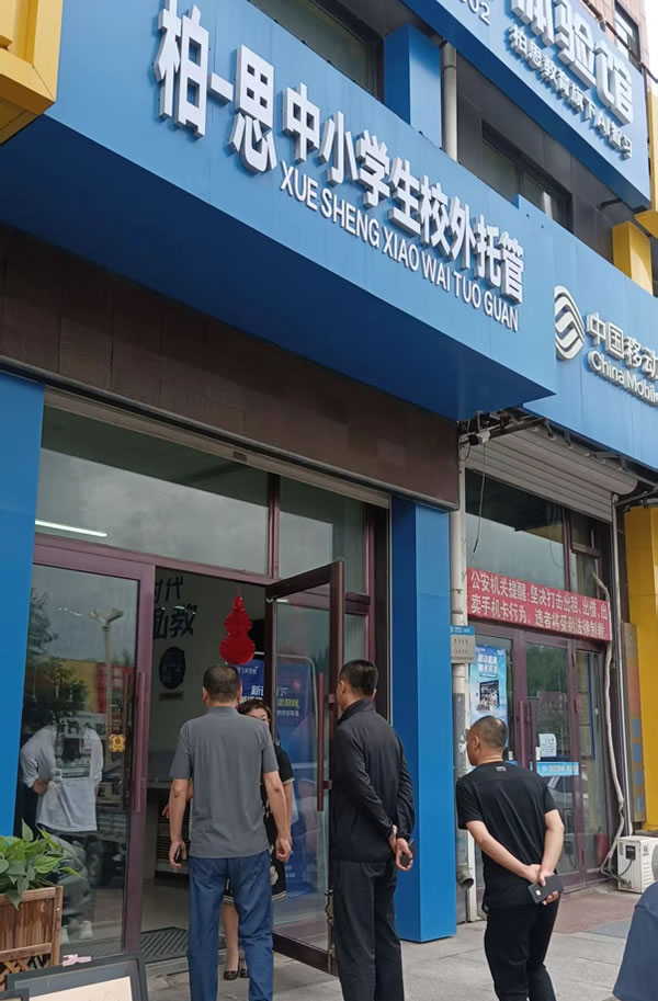 為深入貫徹國(guó)家“雙減”政策文件要求,嚴(yán)厲打擊校外違規(guī)培訓(xùn)行為,6月21日,市教育局“雙減”辦公室、校外教育監(jiān)管股工作人員組成檢查組,重點(diǎn)對(duì)福源小學(xué)及第十一中學(xué)周邊區(qū)域的重點(diǎn)樓宇小區(qū)、托管機(jī)構(gòu)、'小飯桌'、自習(xí)室等場(chǎng)所進(jìn)行檢查。