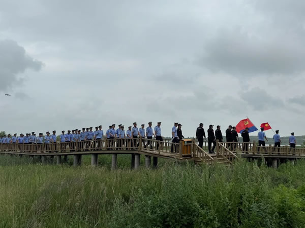 雨后的肇岳山國家濕地公園空氣澄澈,104名黨員民警與青年民警代表列隊整齊,踏上登山征程。他們在清馨氣息中感受自然律動,借山林之翠釋放壓力,重塑身心活力。年輕黨員們腳步輕快,昂揚斗志映襯出肇東公安的蓬勃生命力。此刻天色微變,細雨斜織,民警們踏雨而行,整齊的步伐敲擊大地。雨絲輕撫,潤澤著“春苗”新警們,恰似成長的甘霖,為公安事業(yè)注入生生不息的嶄新力量。