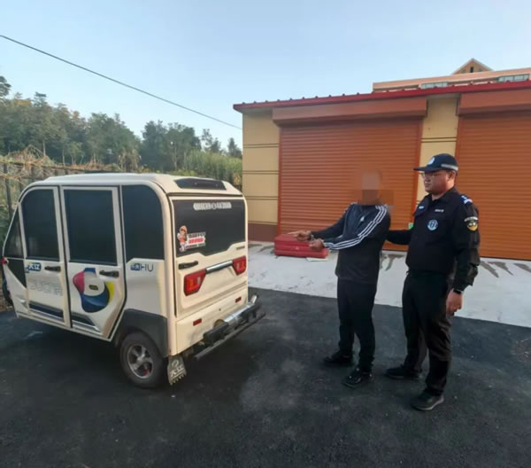 巡特警大隊(duì)民警根據(jù)現(xiàn)場情況,初步認(rèn)定邵先生的三輪車被他人盜走,隨著對該案件的調(diào)查及調(diào)取周邊監(jiān)控,發(fā)現(xiàn)17日當(dāng)晚18時40分在政府廣場被盜三輪車位置附近有三名男性,目標(biāo)清楚,分工明確,有計(jì)劃的將邵先生的電動三輪車盜竊開走,根據(jù)沿途交通卡口視頻排查發(fā)現(xiàn),肇東市五里明鎮(zhèn)居民張某、郭某、穆某確定為盜開邵先生電動三輪車嫌疑人,且該三人已將該被盜電動三輪車停放在肇東市五里明鎮(zhèn)一小區(qū)居民樓下。