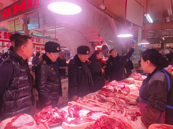 元旦佳節(jié)將至,為切實保障廣大市民節(jié)日期間飲食安全,營造放心、有序的市場消費環(huán)境,12 月 30 日,肇東市市場監(jiān)督管理局黨組成員 副局長孫汝鑫帶領(lǐng)食品安全相關(guān)股室及陽光農(nóng)貿(mào)市場監(jiān)管分局負責人,聯(lián)合市公安局、農(nóng)業(yè)農(nóng)村局等相關(guān)部門執(zhí)法人員,組成12人聯(lián)合檢查組,聚焦群眾消費集中的重點區(qū)域,對陽光農(nóng)貿(mào)市場及周邊商戶開展了元旦期間食品安全專項檢查。